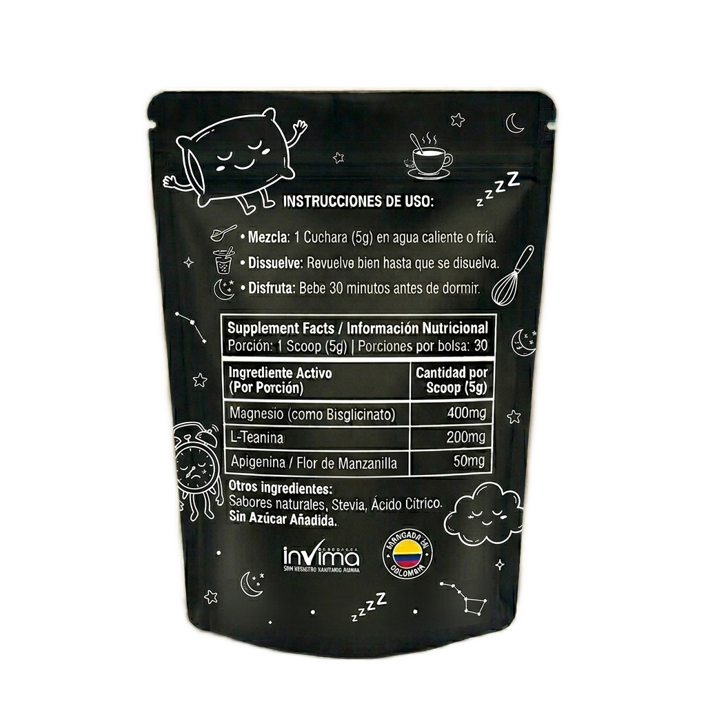 Es una bebida relajante 100% natural. Está hecha en polvo a base de magnesio y extractos de plantas milenarias que te ayudan a dormir profundamente y sin interrupciones, pero sin usar ningún químico.